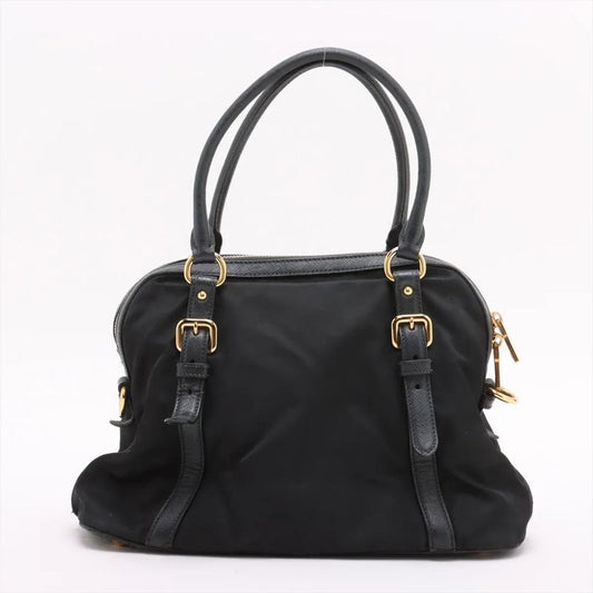Prada Tessuto Nylon Saffiano Leather Handbag Tote Genuine Leather Black Women's