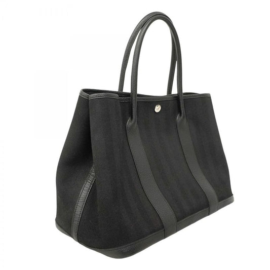 Hermes Tote Bag Garden Party PM Twirl Chevron Black Silver Hardware X Engraved