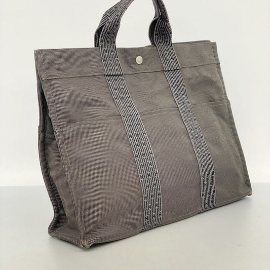 Hermes Tote Bag Her Line MM Canvas Gray Silver Hardware Men Women Unisex
