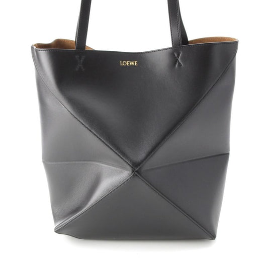 Loewe Puzzle Fold Medium Shiny Calf Foldable Tote Bag Black