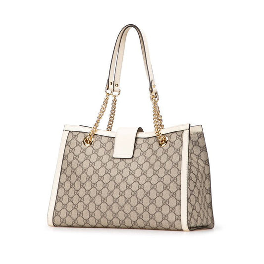 Gucci GG Supreme Padlock Medium Chain Tote Shoulder Bag 479197 Beige White PVC