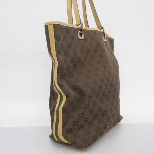 Gucci Tote Bag GG Canvas 31243 Canvas Brown Beige Silver Hardware Women's