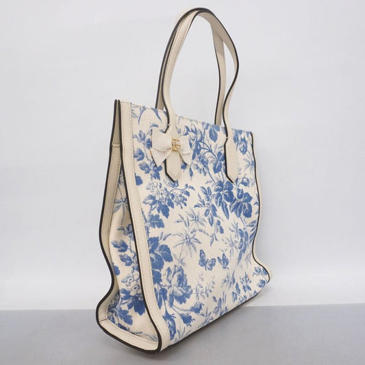 Gucci Tote Bag GG Ribbon/herbarium 432684 Canvas White Blue Chien Pan Gold