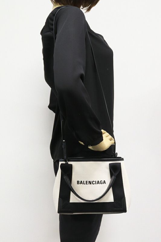 Balenciaga Hand Tote Shoulder Bag Navy Cabas Su XS Canvas X Calf Beige X Black