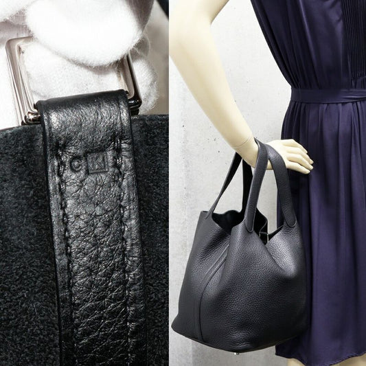 Hermes Handbag Tote Picotin 22mm (087in) Taurillon Cles Mance Black Silver