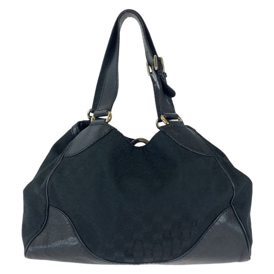 Gucci Black Silver Hardware GG Canvas/leather 113019 Tote Bag Shoulder Bag