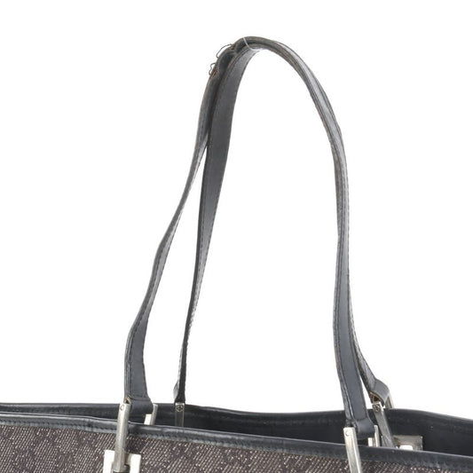 Gucci GG Canvas 31243 Leather Tote Bag Shoulder Black Silver Hardware Women's