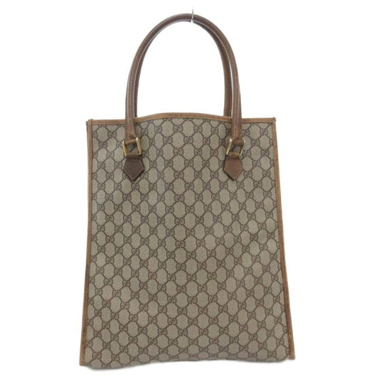 Gucci Old Gucci Vintage GG Supreme Tote Bag Hand Logo Plate Leather Brown AE -