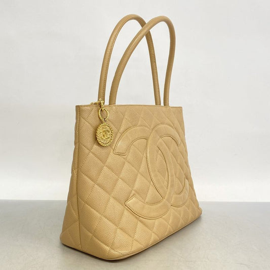 Chanel Tote Bag Revival Tote Caviar Skin Beige Gold Hardware Women's