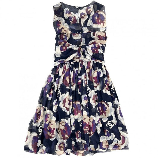 Chanel Dress Women's Coco Mark Floral Pattern Sleeveless See-through Apparel