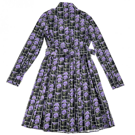 Prada Dress Women's Flower Front Zip Pleated Dress Apparel Clothing Long Dress