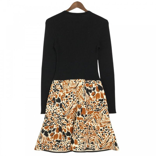 Louis Vuitton Dress Women's Animal Pattern Front Zip Knit Dress Long Sleeve