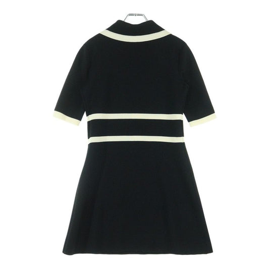 Gucci GG Pique Logo Embroidered Wool Knit Contrast Trim Dress Black Women 681306