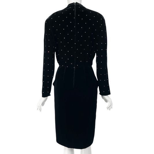 Christian DIOR Dressy Dress Velour Lame Rhinestones Long Sleeves Long