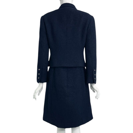 Chanel 96P Coco Button Setup Jacket Dress Wool Navy Size 40