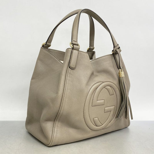 Gucci Handbag Soho 369176 Interlocking Tassel Leather Beige Gold Hardware 2WAY