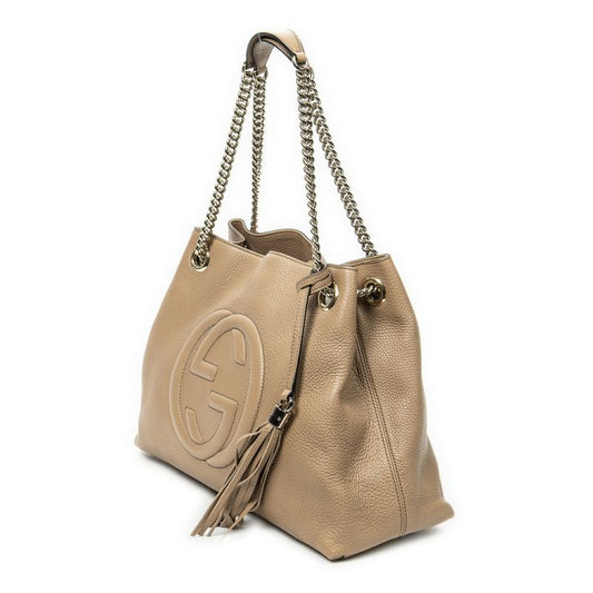 Gucci Soho Chain Tote Beige Grained Calfskin Leather A