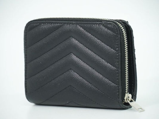 Authentic Saint Laurent YSL Logo Round Zipper Fold Wallet Compact Wallet