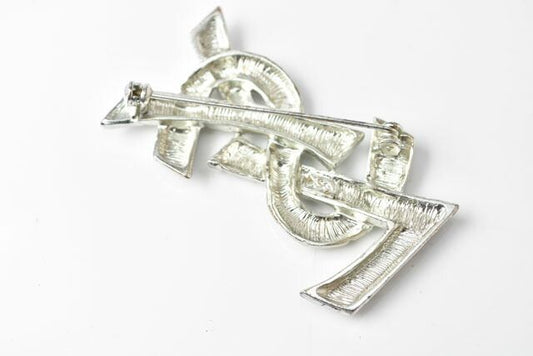 Saint Laurent Pin Brooch Pin Badge Saint Laurent Brooch Monogram YSL Logo Silver