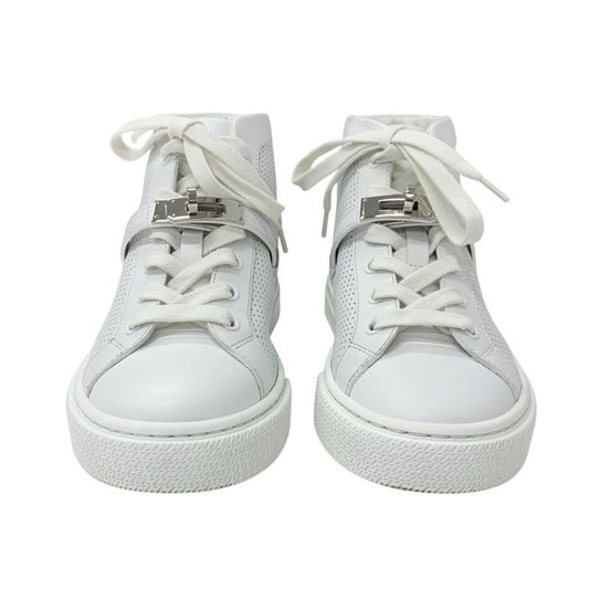 Hermes Get Up Sneakers Shoes Canvas Leather Beige White Unused High Cut