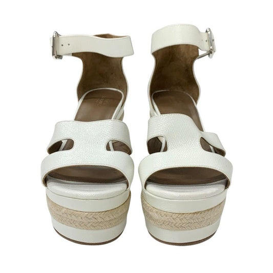 Hermes Ilana Sandals Shoes Patent White Wedge Sole