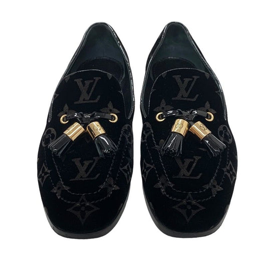 Louis Vuitton Monogram Flat Shoes Velor Patent Black Gold Loafers Opera Shoes