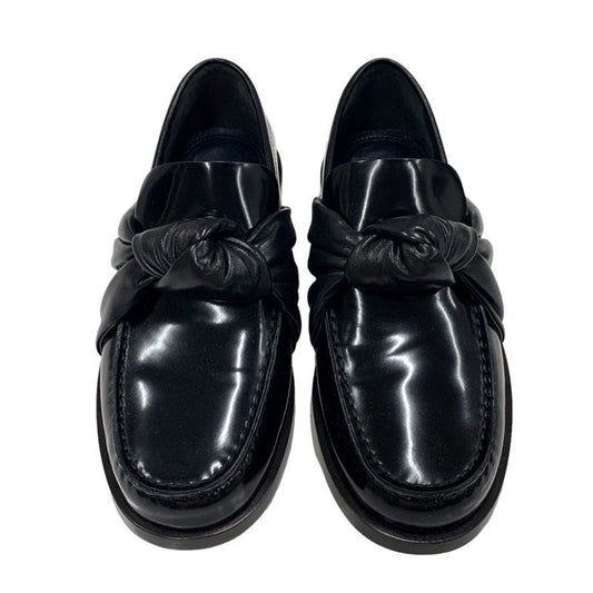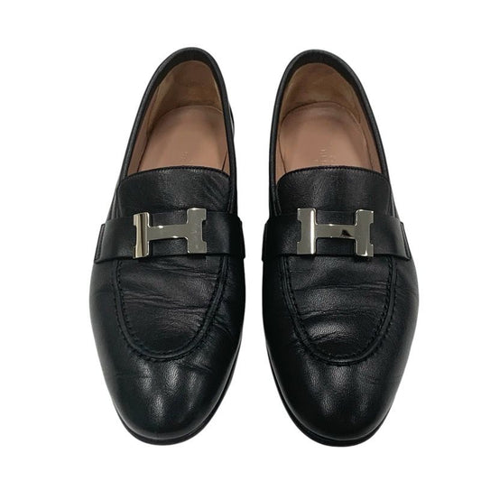 Hermes Paris Loafers Shoes Leather Black Silver Moccasins Flat Shoes Hhardware