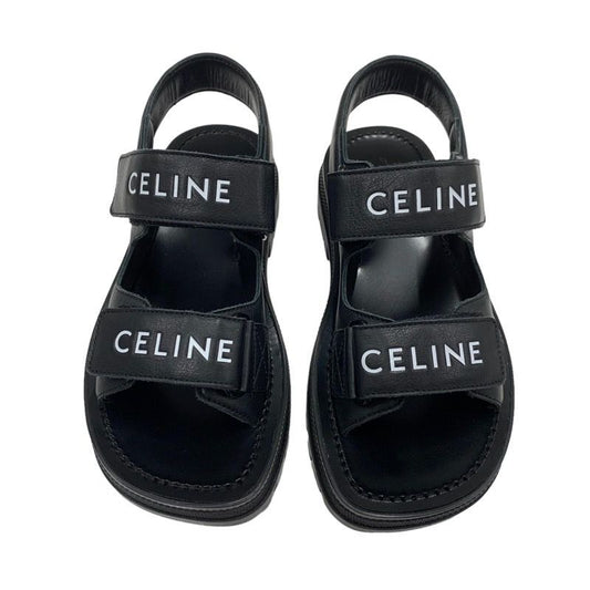 Celine Leo Sandals Shoes Leather Black White Sports Sandals Logo Velcro