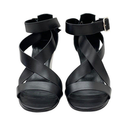 Hermes Sandals Shoes Leather Black Wedge Sole