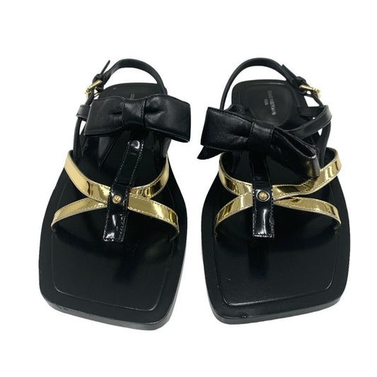 Louis Vuitton Peplum Line Sandals Shoes Leather Black Gold Black Ribbon Flat