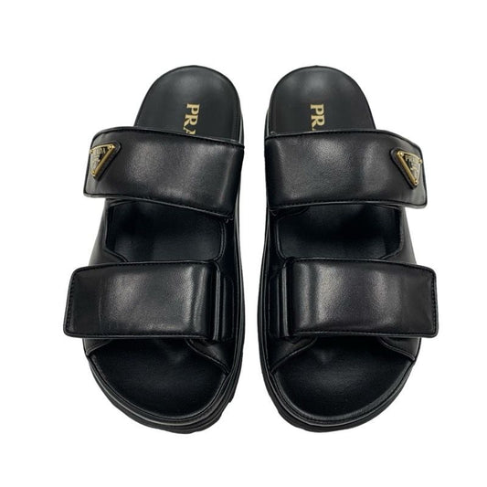 Prada Sandals Shoes Leather Black Unused Slide Sandals Triangle Logo