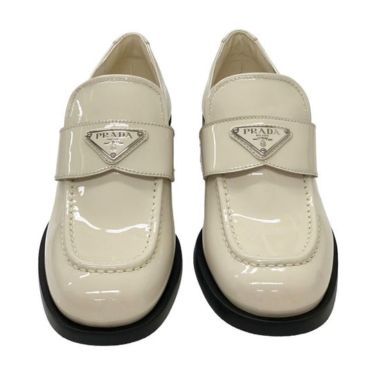 Prada Chocolate Loafers Leather Shoes Patent Ivory Unused Triangle Logo