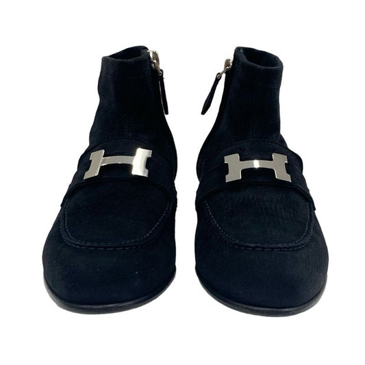 Hermes Saint Honore Boots Short Boots Shoes Suede Black Silver Constance