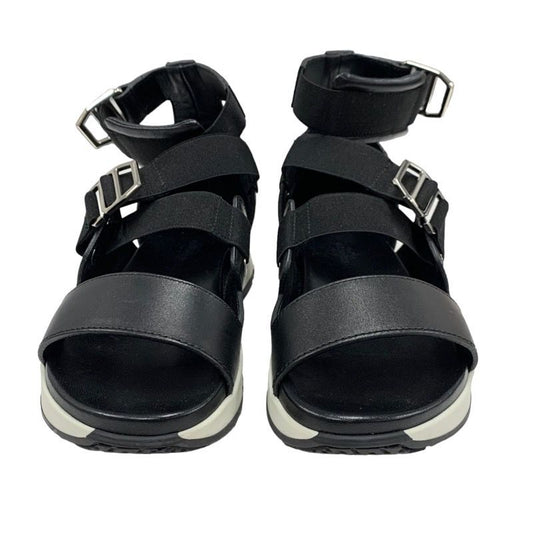 Louis Vuitton Lock It Line Sandals Shoes Leather Black Gold LV Circle Logo