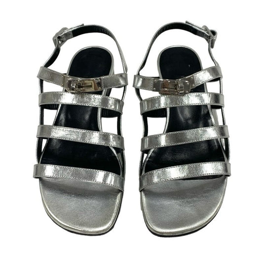 Hermes Transat Sandals Shoes Leather Silver Flat Sandals Kelly Hardware