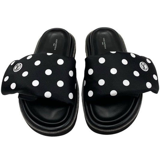 Louis Vuitton Pool Pillow Line Sandals Shoes Satin Black White Flat Sandals Dots