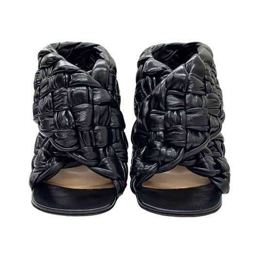 Bottega Veneta Intrecciato Sandals Shoes Leather Black Cross Strap Braided