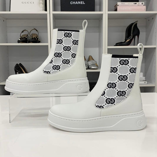 Unused Gucci GG Supreme Leather Logo Side Gore Boots White