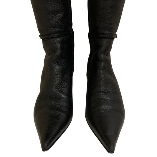 Fendi Leather Side Zip Pointed Toe Long Boots Size 35.5 Equivalent To 22.5cm