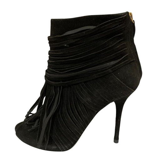 Gucci Suede Leather Fringe Back Zip Short Boots 24cm (9.45in) Equivalent Black