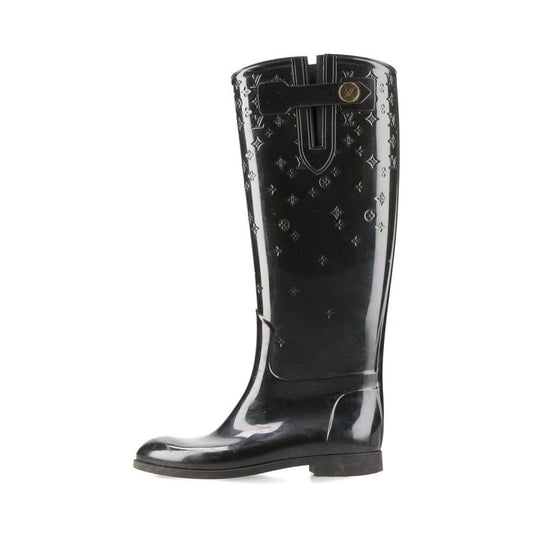 Louis Vuitton Monogram Drops Line Rubber Long Boots Women's 36 Black Made In