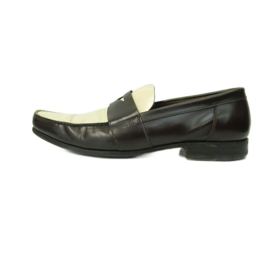 Prada Coin Loafer Shoes Leather Bicolor 9 27.0cm (10.63in) Brown Beige 1120