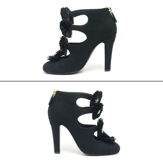 Unused|chanel Open Short Boots Women's 36c(about 22cm (8.66in)) Black Rhinestone