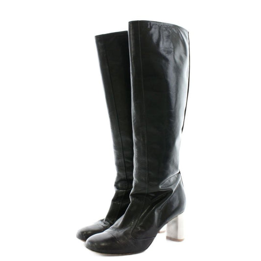 Celine Phoebe Period Bambam Long Boots Heel Round Toe Leather 37 Black AN26