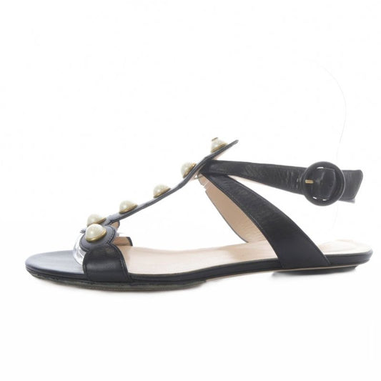 Gucci Sandals Flat Faux Pearl Strap Leather 39 Black YO16
