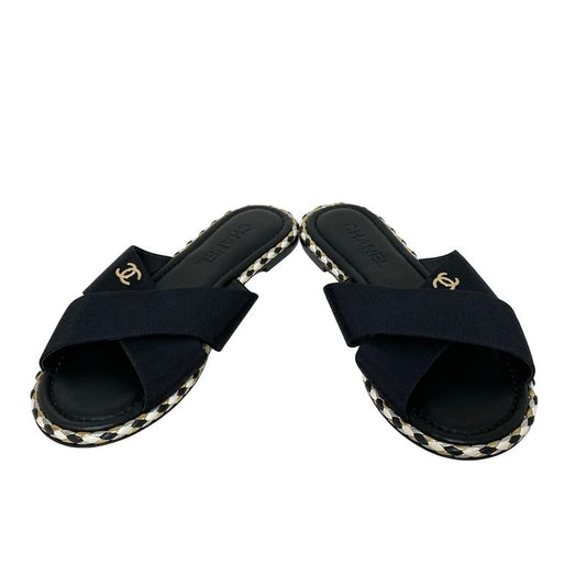 Chanel Sandals 39 C Women - G32825 Black Coco Cross Strap Flat Sandals