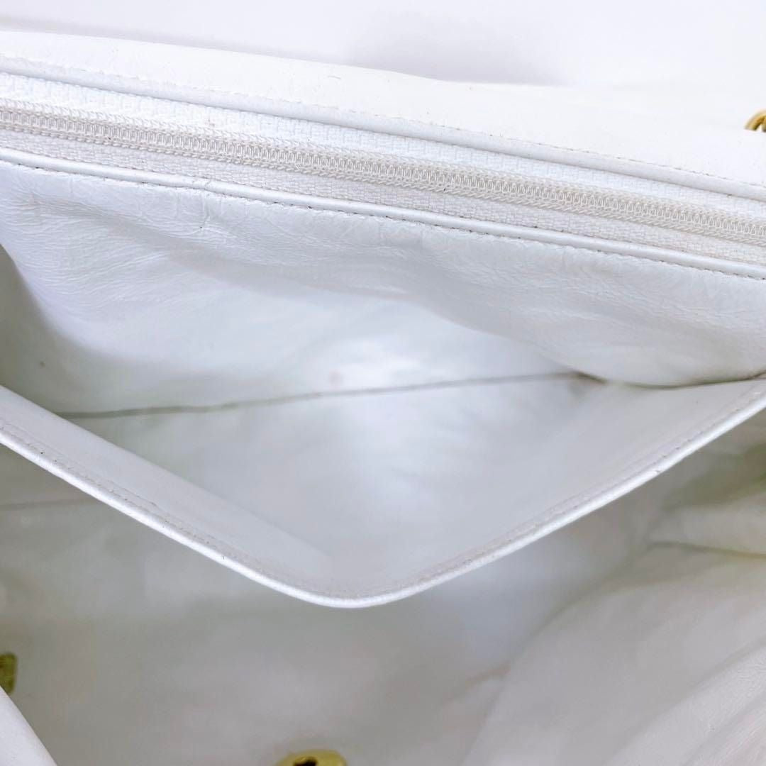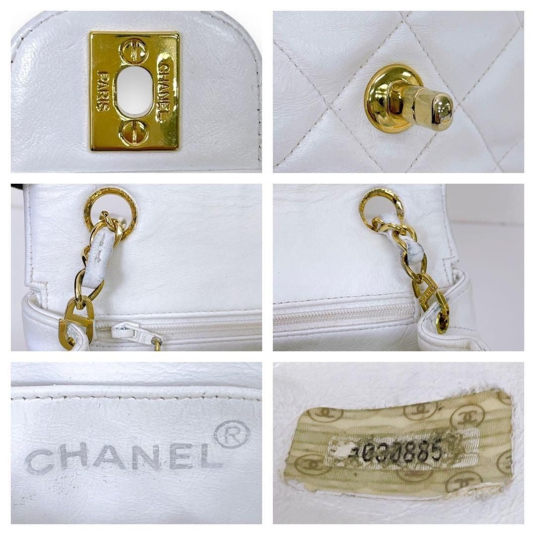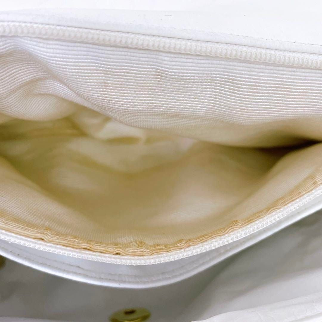 This is an authentic CHANEL Vintage Matelasse Lambskin Leather Quilted Shoulder Bag Crossbody Chain in White. This shoulder purse is crafted of luxurious lambkin leather. The timeless flap bag features the iconic interlocking CC logo in gold at the front.