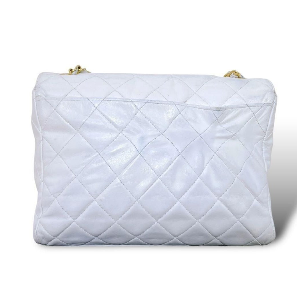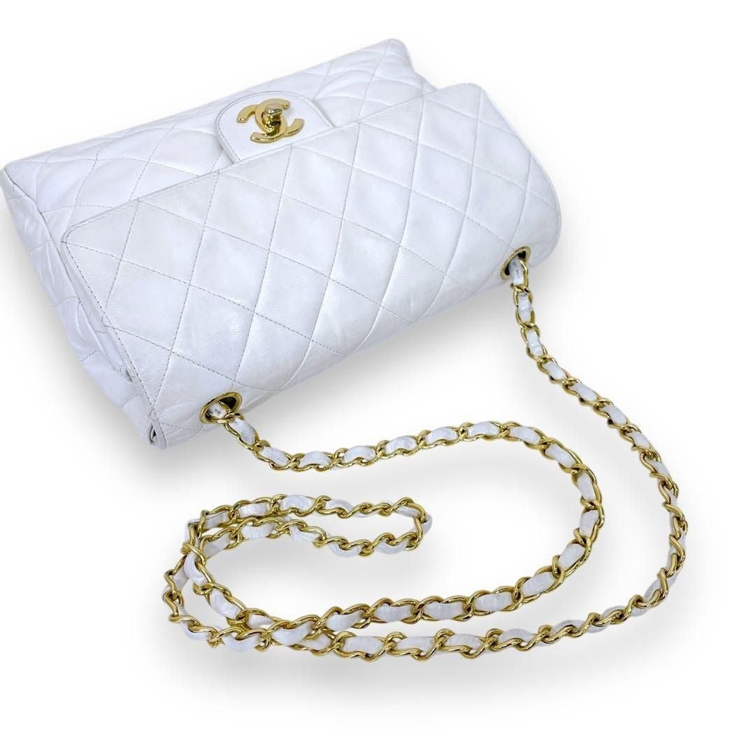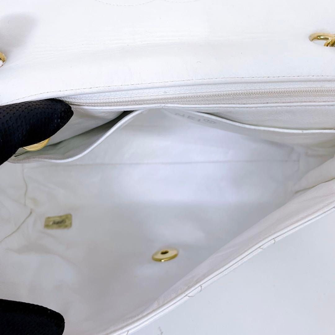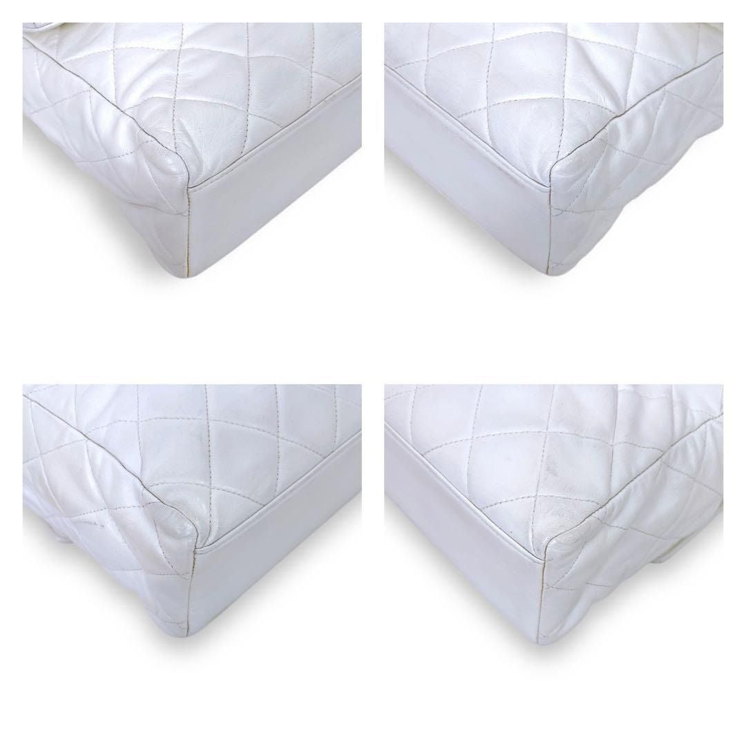 This is an authentic CHANEL Vintage Matelasse Lambskin Leather Quilted Shoulder Bag Crossbody Chain in White. This shoulder purse is crafted of luxurious lambkin leather. The timeless flap bag features the iconic interlocking CC logo in gold at the front.