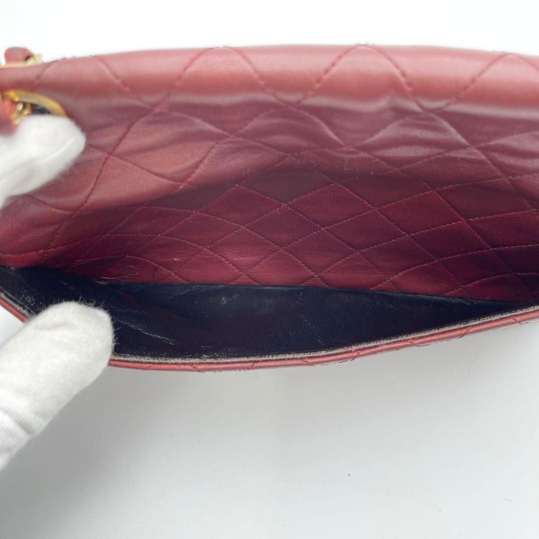 This is an authentic CHANEL Vintage Matelasse Lambskin Leather Quilted Shoulder Bag Crossbody Chain in Red. This shoulder purse is crafted of luxurious lambkin leather. The timeless flap bag features the iconic interlocking CC logo in gold at the front.