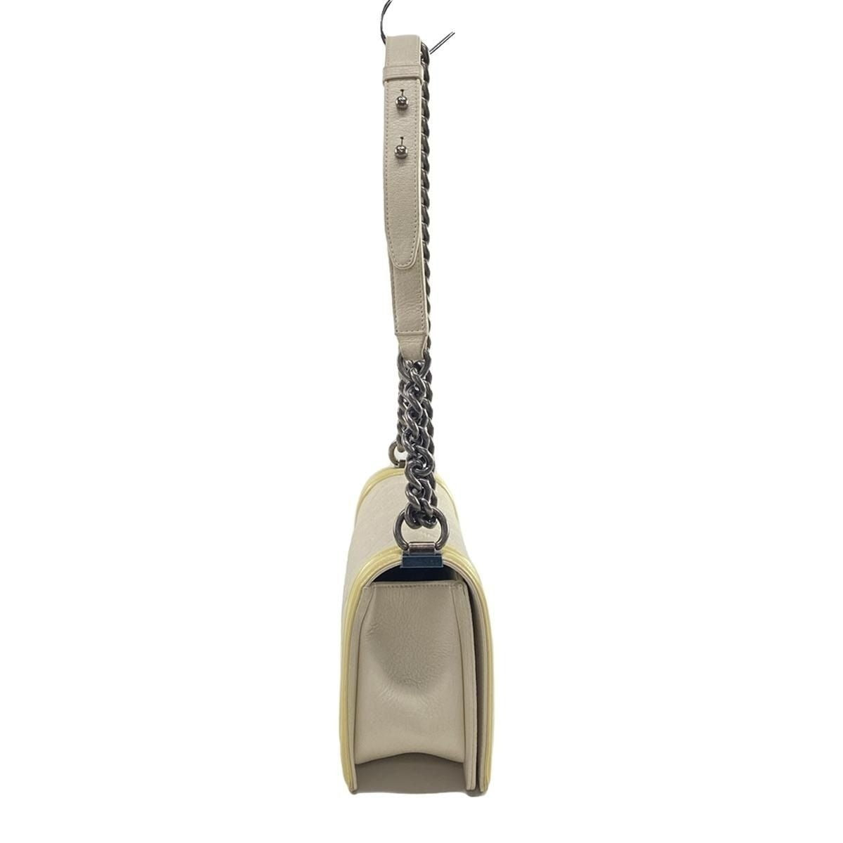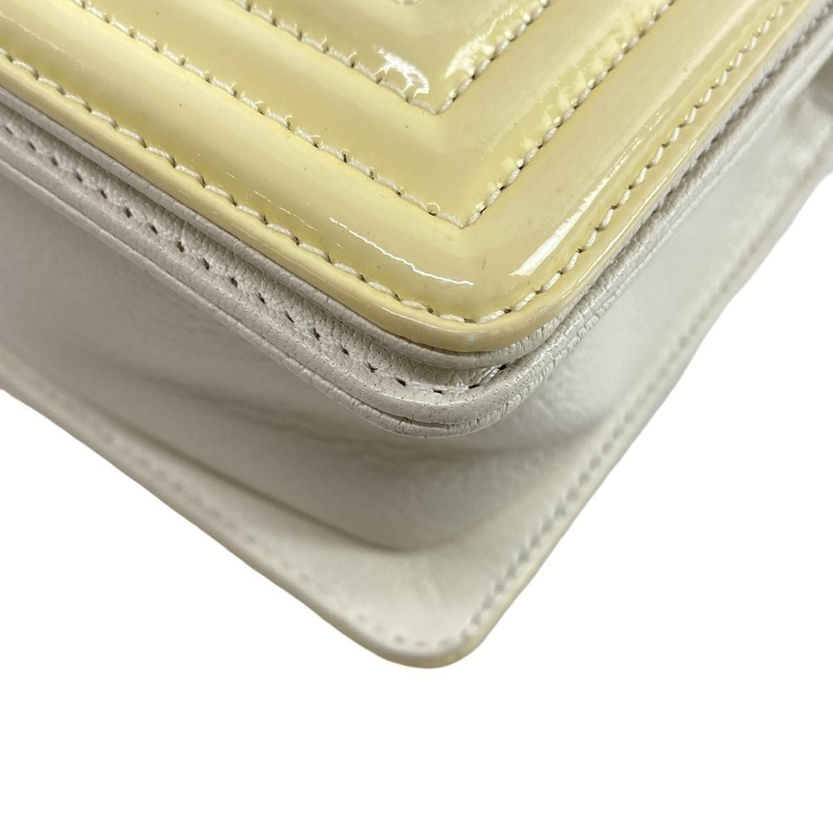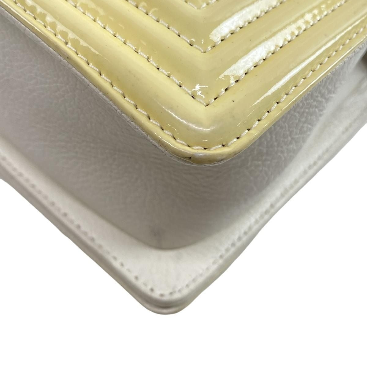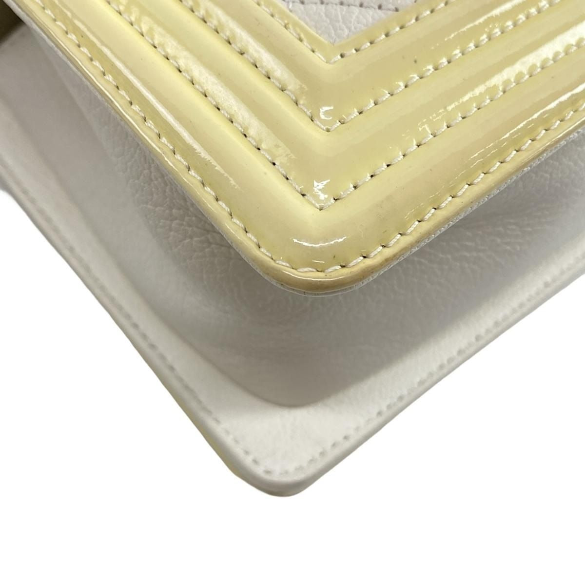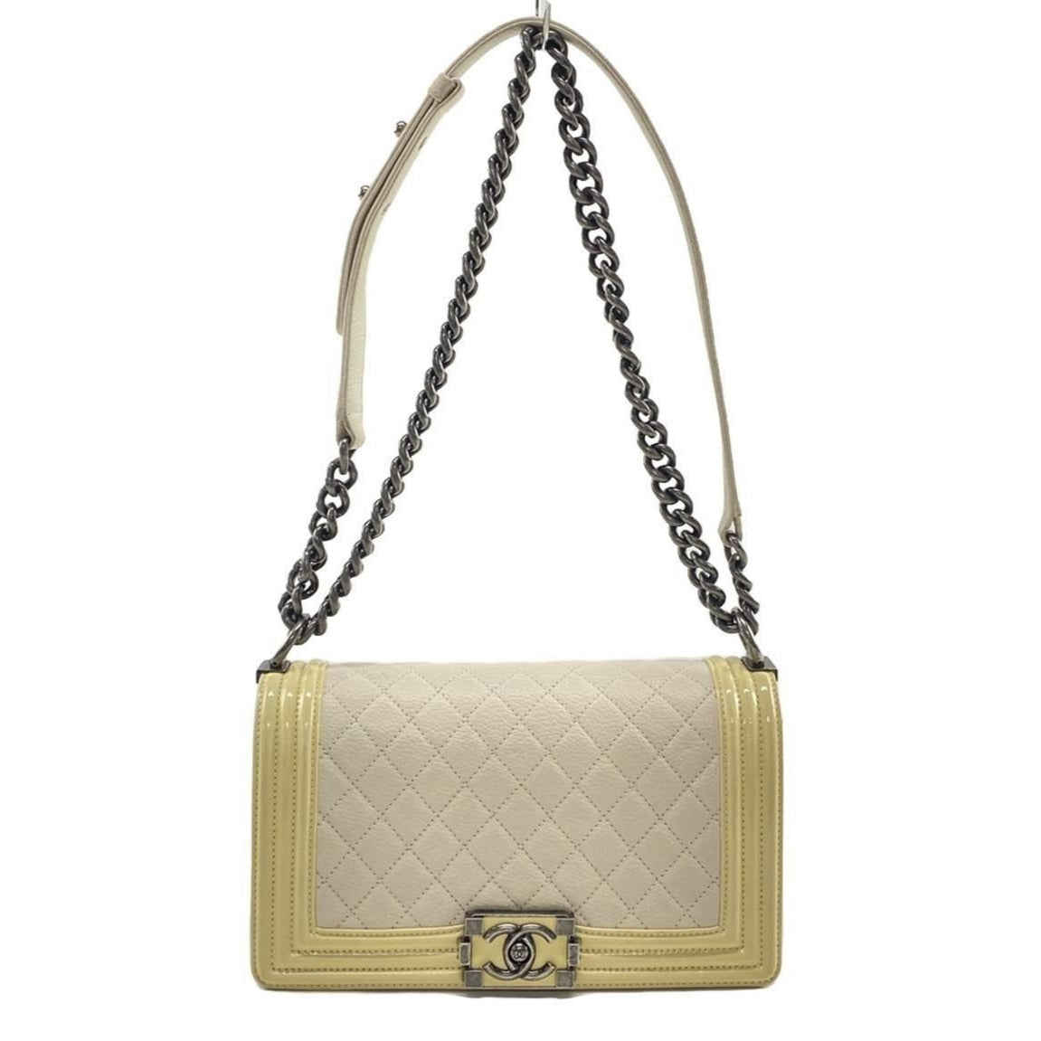 CHANEL Boy Flap Bag Quilted Chain Shoulder Bag Caviar Patent Ivory